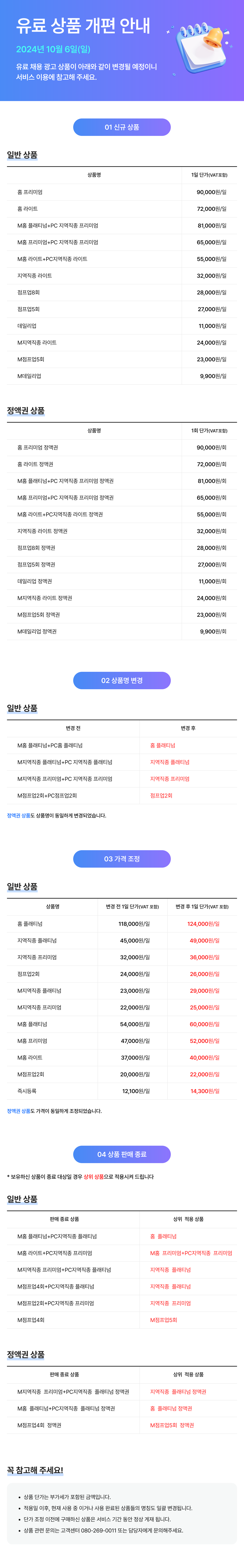 [공지] 유료 상품 개편 안내 (10/06)